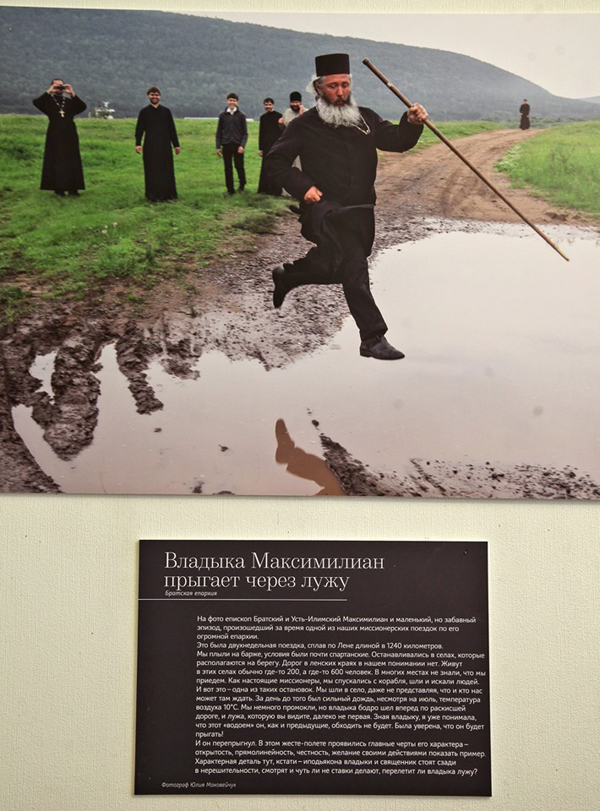 На снимках, представленных на выставке, – молодежь и старики, священники и дети… И, зачастую, даже епископы на фотографиях показаны в живой, неформальной обстановке. Так, например, на снимках Юлии Маковейчук архиепископ Якутский и Ленский Роман управляет собачьей упряжкой, а епископ Братский и Усть-Илимский Максимилиан прыгает через лужу.
