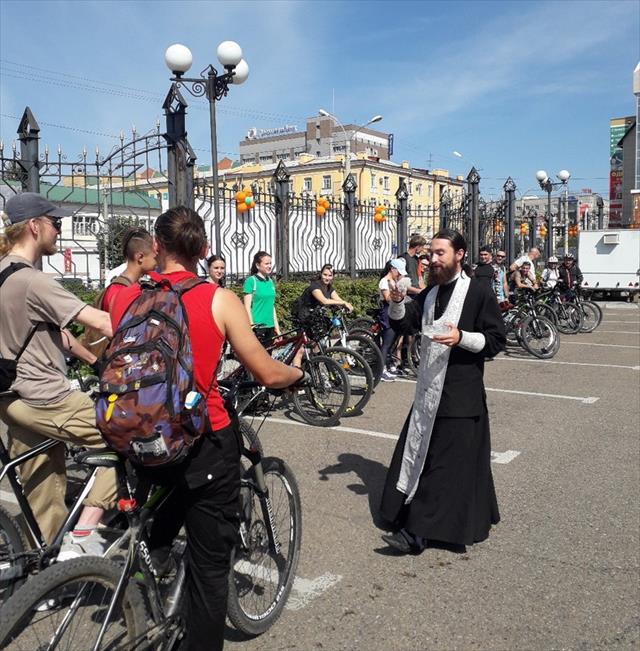 После регистрации, объявления правил, иерей Валерий Шаферов благословил участников, окропил святой водой. В 12.30 команды получили первые задания и поехали по маршруту.
