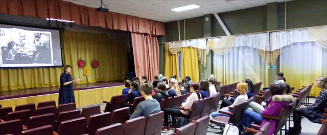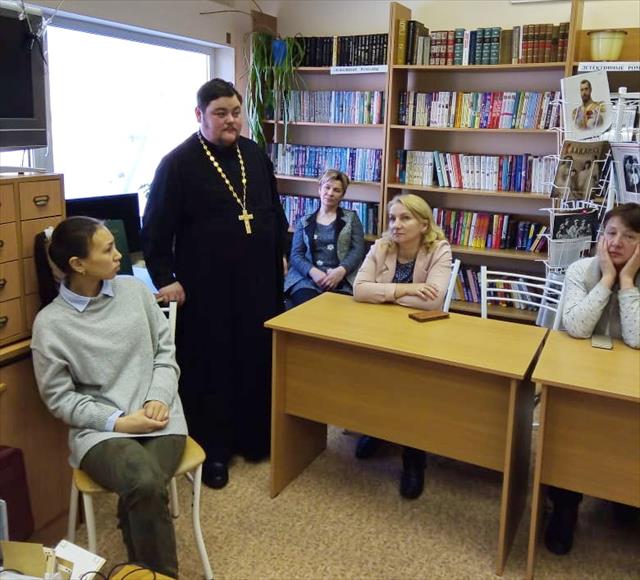 Вот в таких условиях при сильном ветре и минус 25 градусов Галина Дмитриевна бегала по верхним Тиличикам, искала нужные адреса и людей. Познакомилась с директором школы, до которой не донесли информацию о десанте. Договорилась о беседе со старшеклассниками. Здесь же в местном клубе прошла встреча с культработниками, библиотекарями и прихожанами. Галина Юлдашева провела беседу о «Венценосной семье», рассказала, в каких трудных условиях на Камчатке епископ Нестор занимался просвещением коренных жителей. О. Савва в рамках Рождественских чтений провел беседу «Великая победа: наследие и наследники».