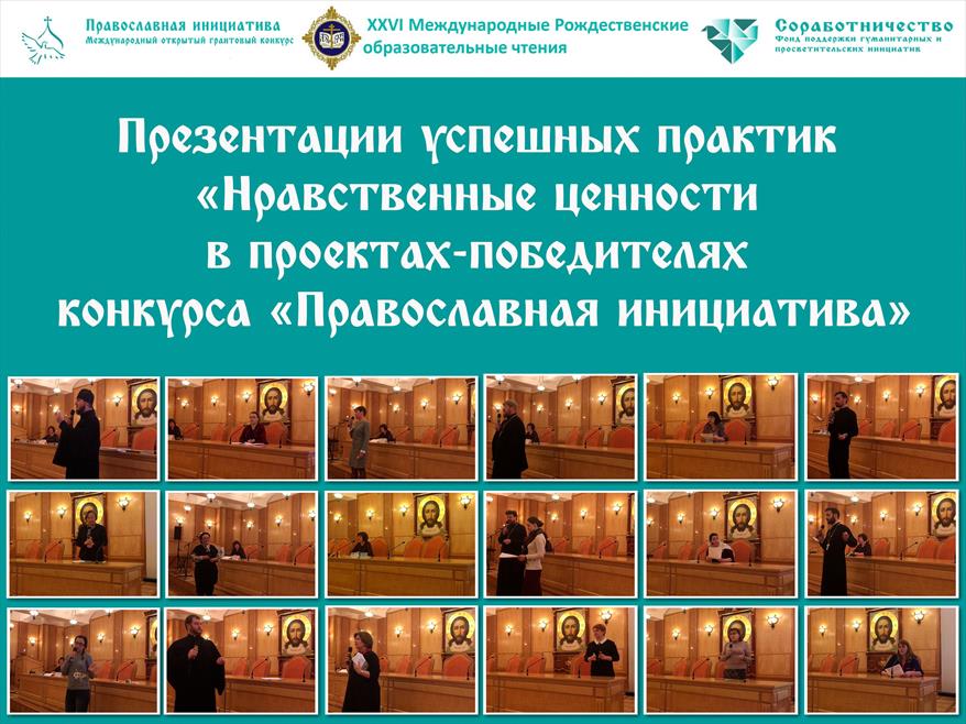 26 января 2018 года в Москве в конференц-зале Храма Христа Спасителя состоялась секция «Нравственные ценности в проектах-победителях конкурса «Православная инициатива». Мероприятие подготовили специалисты Фонда «Соработничество» в рамках XXVI Международных Рождественских образовательных чтений «Нравственные ценности и будущее человечества».