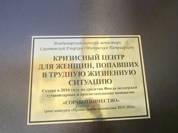 Вернее, такой важный объект работает при Владимирском женском монастыре в пос. Пролетарский (Саратовская обл., г. Вольск) уже почти год, а вот официальное его открытие состоялось 4 февраля 2017 г. Помогают здесь беременным женщинам и женщинам, попавшим в трудную жизненную ситуацию. У Центра есть официальный сайт: http://crizis-center.ru/