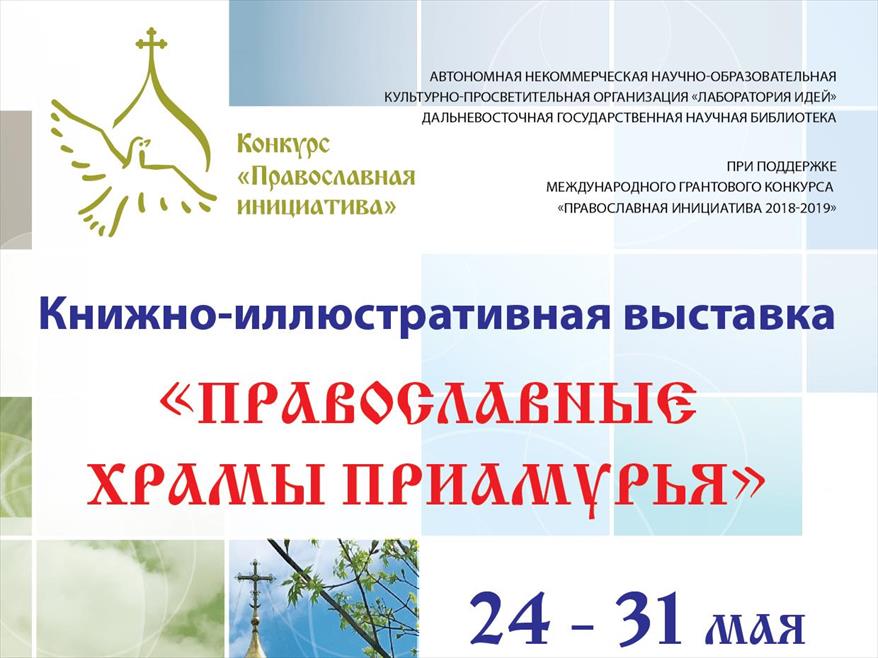 24 мая 2019 года в выставочном зале Дальневосточной государственной научной библиотеки открылась книжно-иллюстративная выставка «Православные храмы Приамурья».