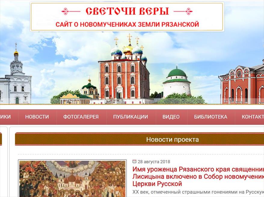 28 августа 2018 года состоялся запуск сайта о новомучениках и исповедниках Рязанской земли, созданный в рамках проекта "Светочи веры". Данный проект реализизуется силами сотрудников Миссионерского отдела Рязанской епархии при поддержке конкурса малых грантов "Православная инициатива - 2018".