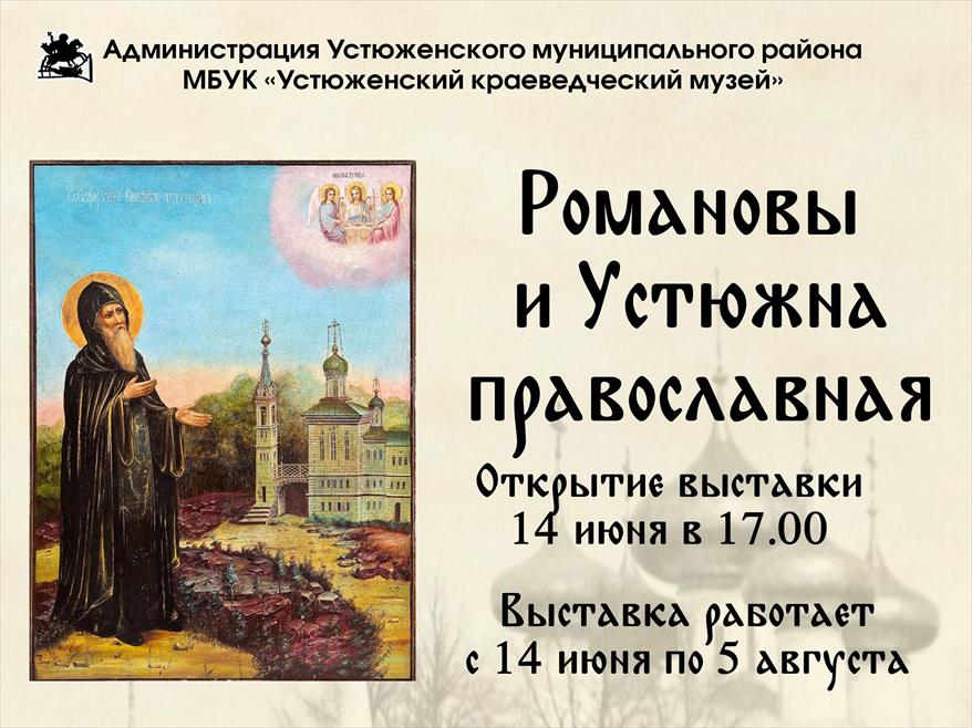 14 июня 2018 года в 17 часов в Устюженском краеведческом музее состоится открытие выставки «Романовы и Устюжна православная…» при поддержке Международного грантового конкурса «Православная инициатива 2017-2018 ».