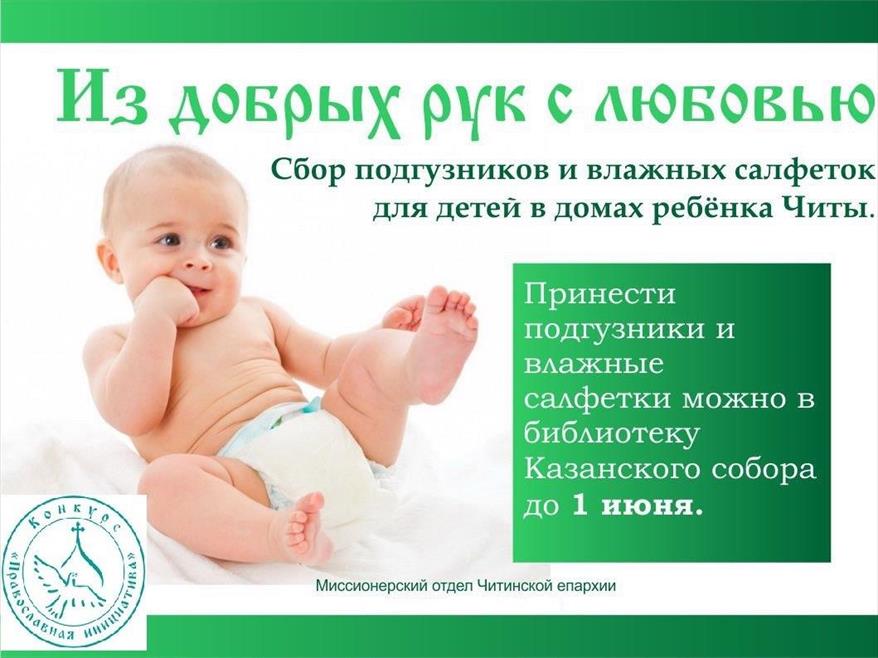 С 1 мая по 1 июня 2018 года в Чите по благословению митрополита Читинского и Петровск-Забайкальского Димитрия в рамках проекта "Православная молодёжь-детям", победителя конкурса малых грантов "Доброволец-2018" состоялась благотворительная акция «Из добрых рук с любовью».