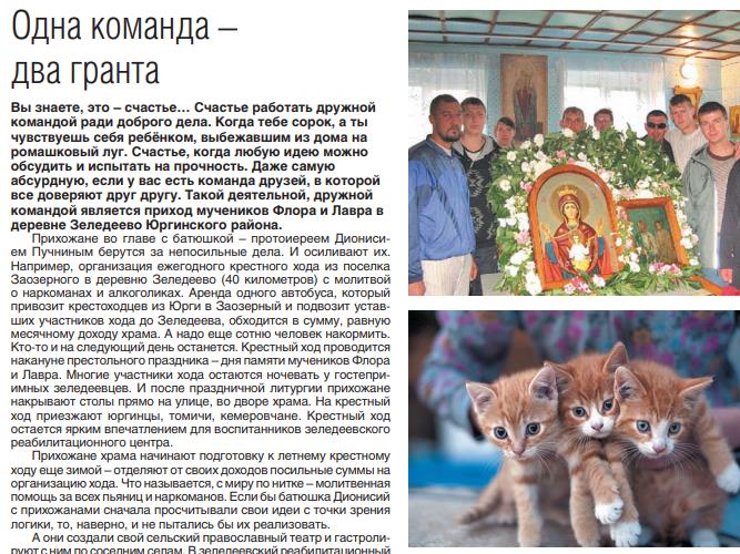 Вы знаете, это – счастье… Счастье работать дружной командой ради общего дела. Когда тебе сорок, а ты чувствуешь себя ребенком, выбежавшим на ромашковый луг. Счастье, когда любую идею можно обсудить и испытать на прочность. Даже самую абсурдную, если у вас есть команда друзей, в которой все доверяют друг другу. Такой деятельной, дружной командой является приход мучеников Флора и Лавра в деревне Зеледеево Юргинского района Кемеровской области.